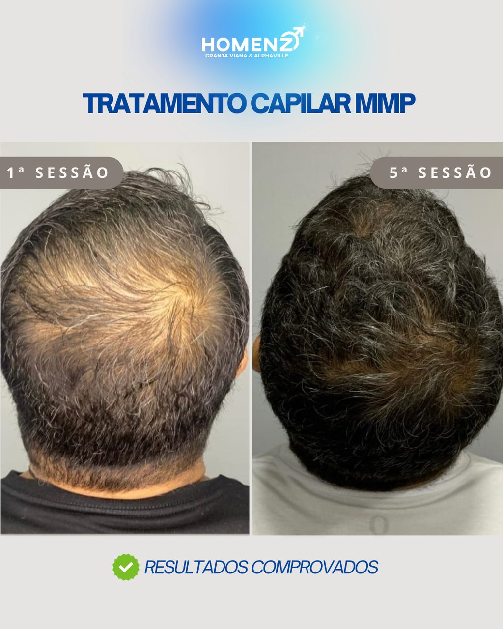 O MMP é um tratamento avançado que combina microagulhamento, aplicação de ativos, LED terapêutico e intradermoterapia. Ele fortalece os fios, estimula o crescimento capilar e revitaliza o couro cabeludo.