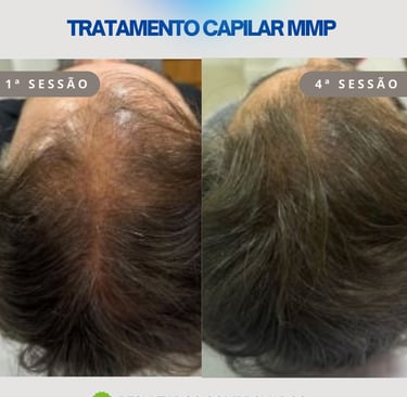 O MMP é um tratamento avançado que combina microagulhamento, aplicação de ativos, LED terapêutico e intradermoterapia. Ele fortalece os fios, estimula o crescimento capilar e revitaliza o couro cabeludo.
