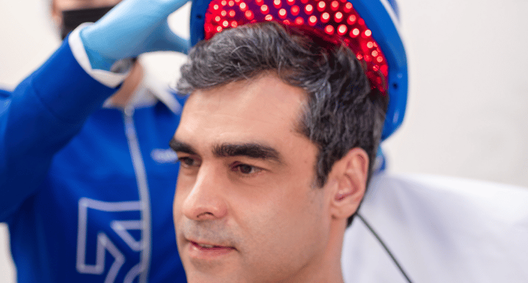 Capacete de LED que melhora a microcirculação e fortalece os fios.