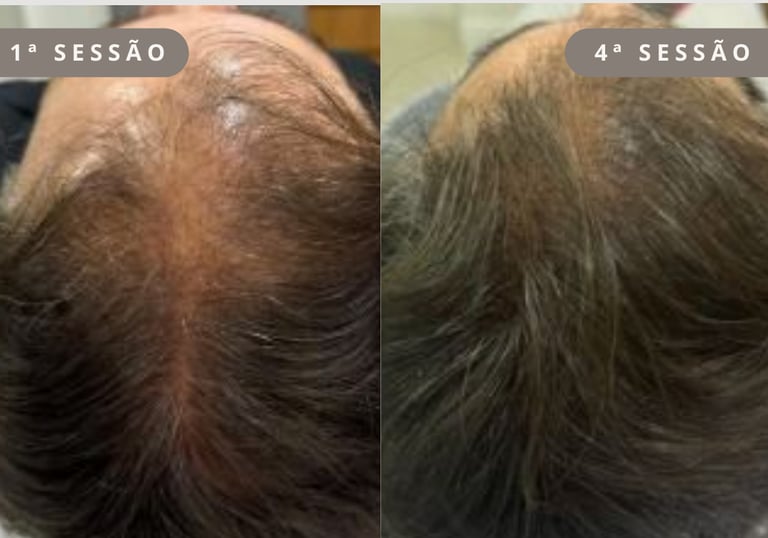 A maioria dos pacientes nota melhora na textura e força dos fios a partir das primeiras sessões. O crescimento capilar costuma ser mais visível a partir do 3º mês, variando de pessoa para pessoa.